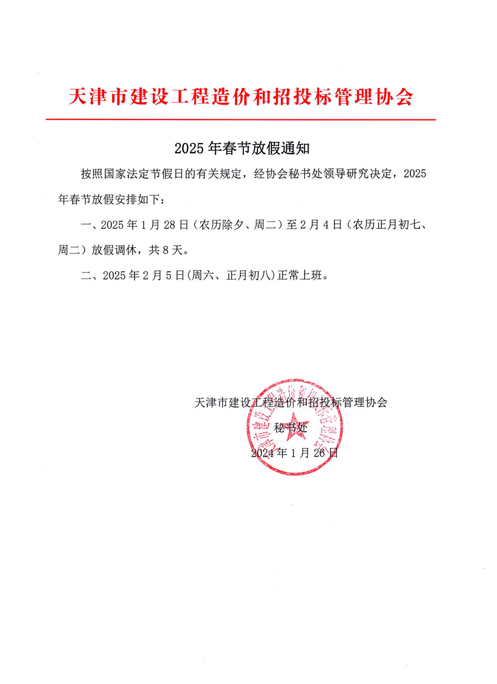 发布者:天津市建设工程造价和招投标管理协会发布时间:2025-01-27浏览次数:2298